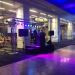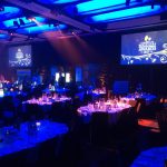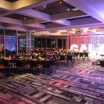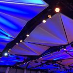 A shot of the lighting effects on the ceiling at Rydges in the Podium Bar